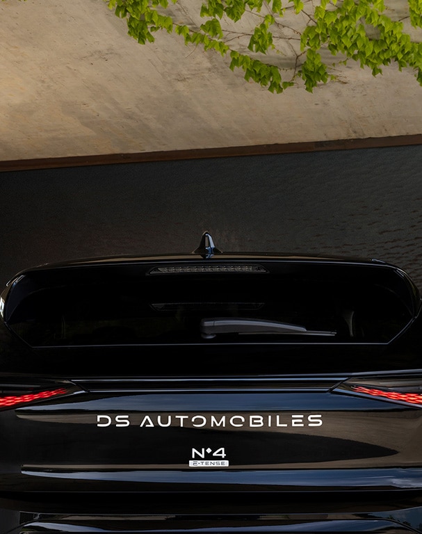 N°4 E-TENSE dispune de o nouă grilă iluminată de semnătură cu logo-ul DS iluminat, inspirată de automobilele concept DS AERO SPORT LOUNGE și DS E-TENSE Performance. Acesta oferă un aspect pătrunzător și sofisticat cu farurile sale fascinante DS MATRIX LED VISION.